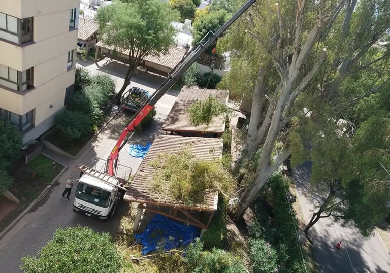 Poda de altura, extracción de ejemplares grandes y retiro de restos.